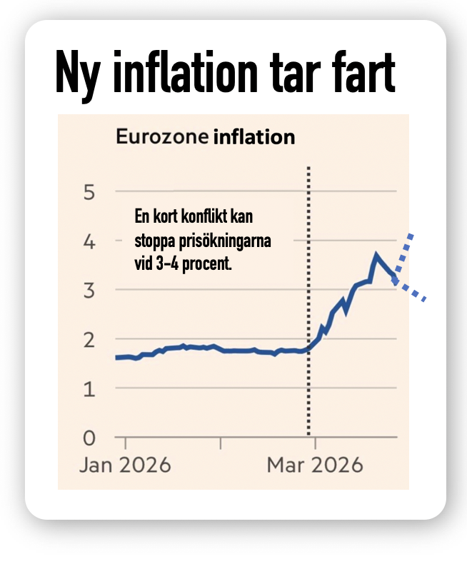 Oron för att det ska bli brist på diesel, gas och flygfotogen har höjt priserna världen över. En ny okuvlig inflationsmotor är tänd. Både mat, kläder och teknik lär bli dyrare. Frågan är om det kan stanna vid 3–4 procents inflation. Läs mer