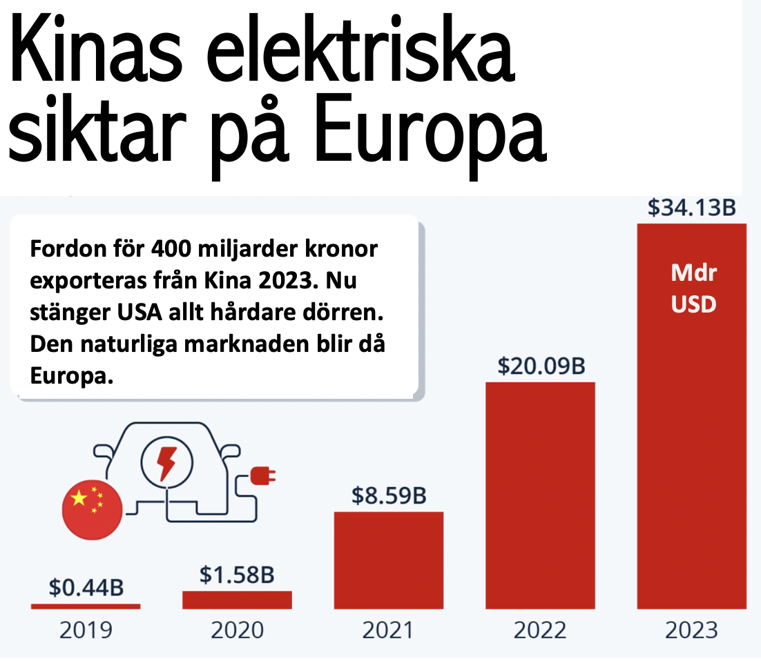 Detta sätter extra press på Europa. För vart ska kinesiska bilar annars ta vägen om de inte kan säljas i USA?