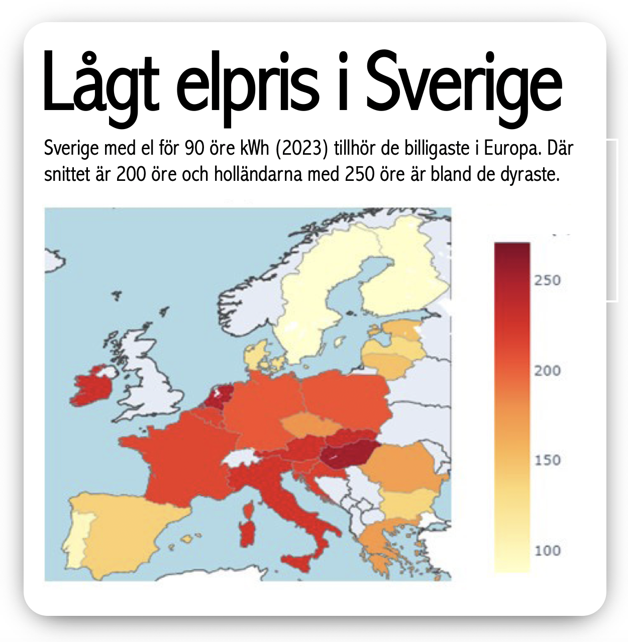 Europas höga elpriser är en annan faktor som underminerar industriell förnyelse. Här är elen 2–3 gånger dyrare än i USA och naturgasen 5–6 gånger dyrare än i Kina. Orsaken är att vi själva saknar naturresurser för att utvinna mer billig energi.