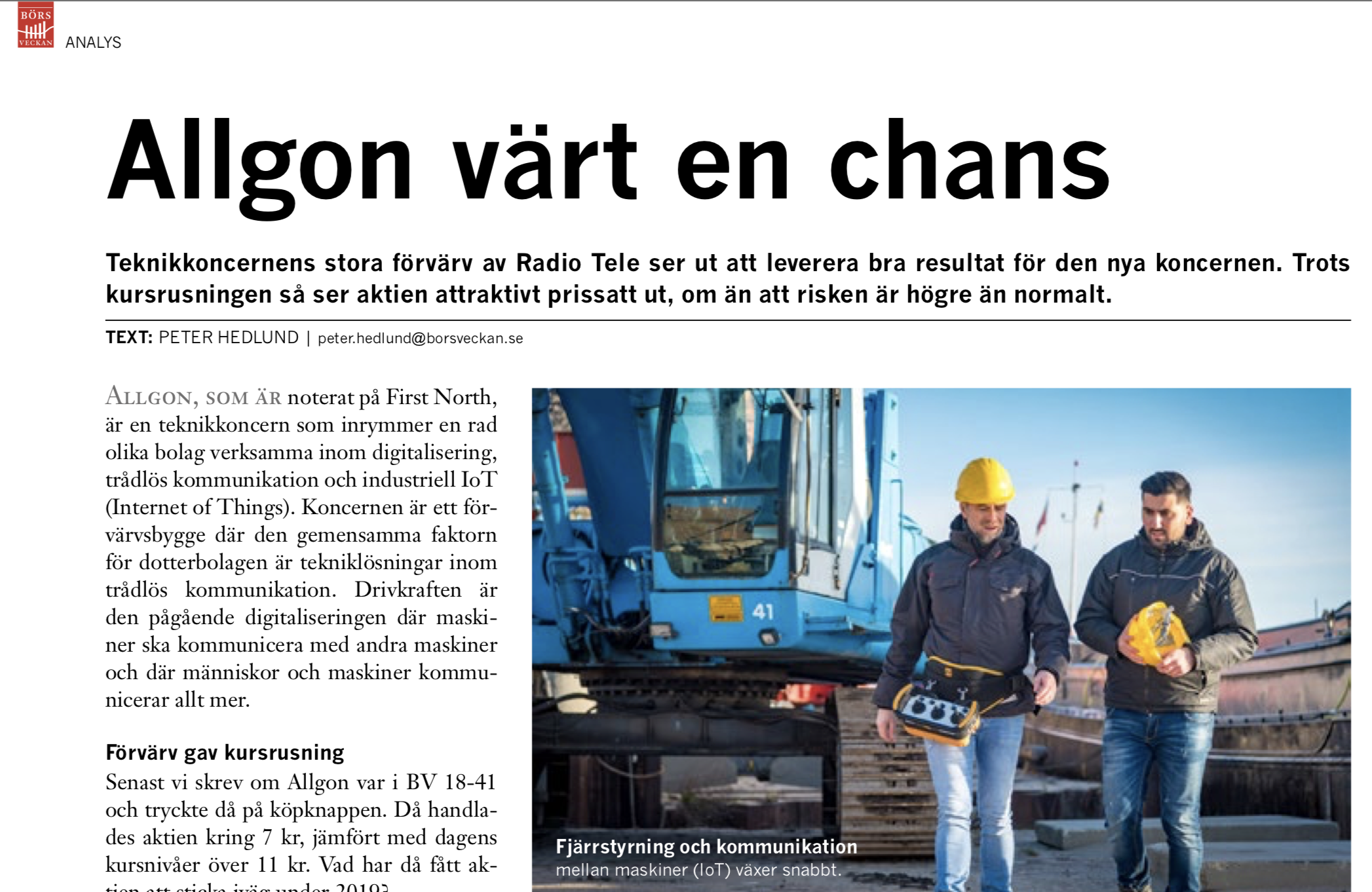För ett år sedan träffade jag Allgons vd första gången och vi började jobba ihop kring kundbesök, filmer, föreläsningar, texter mm. Spännade? Ja, väldigt. Här en oberoende Börsveckan-analys. Och mer av mina tankar om Allgon.
