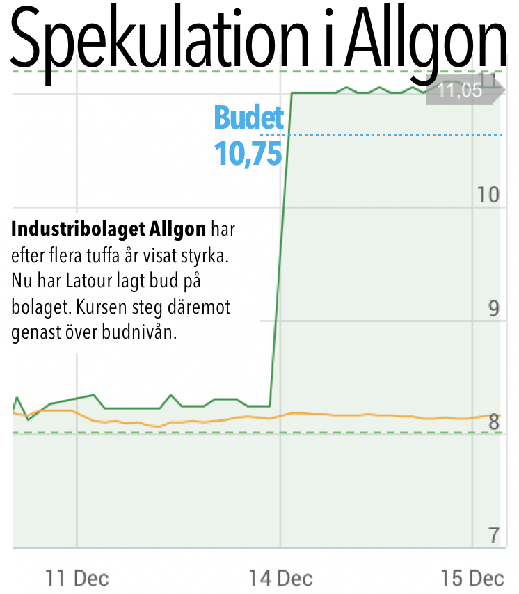 Det har ryktats om bud flera gånger genom åren. Men vad som bara var snack och på riktigt får vi se. Bolaget har klarat pandemin på ett överraskande starkt sätt. Min bild av Allgon har bara stärkts genom åren. Det vore konstigt om Latour och jag var ensam om att se bolagets potential. Att lägga ett bud kräver däremot ett gediget hemarbete. Vi får se om någon annan hinner det under julledigheten.