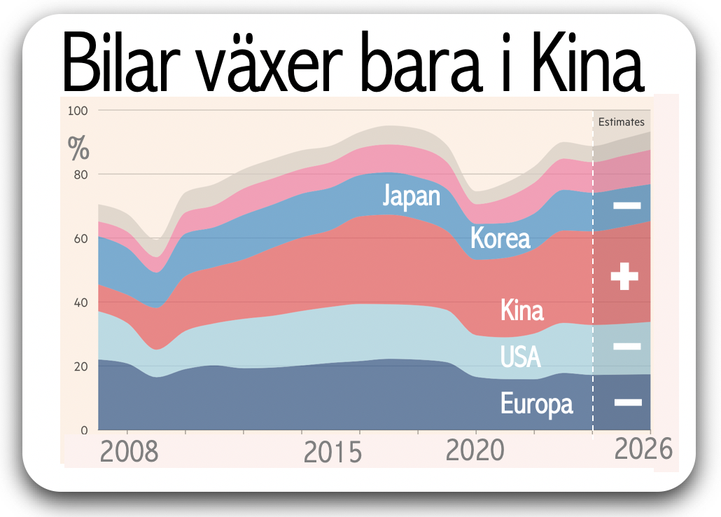 Bilindustrin växer mest i KinaFrån årets krav på 25 % el kommer kraven växa mot 70 % till år 2030. Det är däremot inget nytt påfund. Det har EU:s 27 medlemsländer förhandlat fram under många år. Beslutet fattades redan 2021.