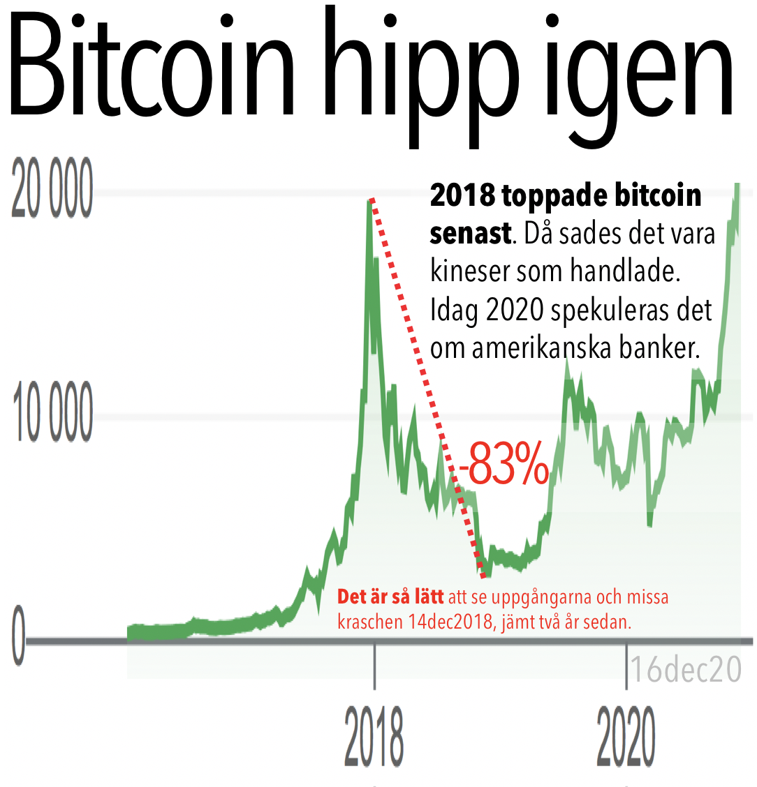 Några stora banker har testköpt kryptovalutan bitcoin. Men det är inget klarttecken. Som bekant prövar de både floppar och flippar… För bitcoin gäller samma sak som pockemon-kort. Värdet är ”bara” ALLA sina köpare. Senast den tilliten prövades så gick kursen -83%. Och kan antagligen fortsätta ”hur som helst…” Inget för sparpengar kort sagt.