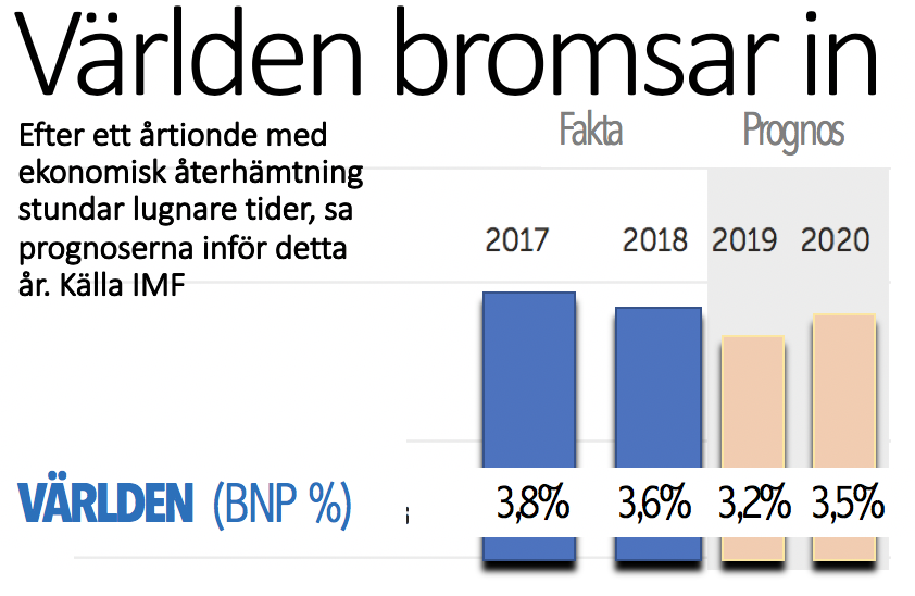 Prognoserna inför 2020, säger nu att vår ekonomi bromsar in i en mild lågkonjunktur. I världen och i Sverige. Men detta är samtidigt bara siffer-lek, som utgår ifrån att efterfrågan kommer tillbaka med råge redan året efteråt. Olika överraskningarna däremot är inte med i kalkylen.