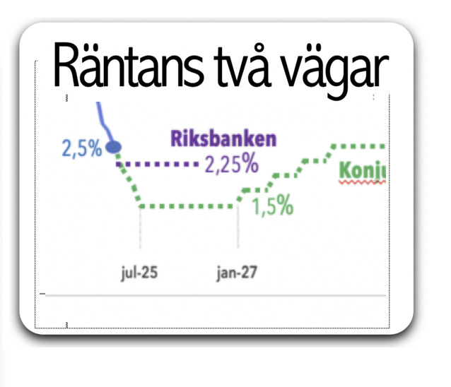 Fakta och förhoppningar ger olika räntebotten. Några säger 2 % ränta. Andra ser fram mot 1,5 %. Marknaden brukar ha rätt. Och den är förhållandevis lugn inför hoten om tullar och konflikter. Istället kan hushållen bli tvärbromsen.