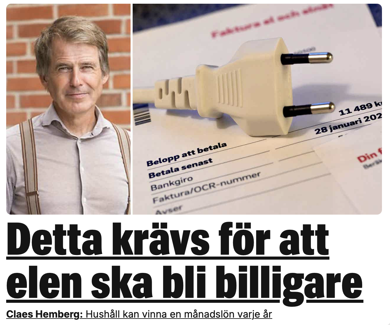 Det är inte politiker som ger oss billig el. Det är bättre verktyg till hushållen och stramare krav för elbolagen och nätbolagen. De som kan visa vägen är Energimarknadsinspektionen (EI) och lokala energirådgivare, resonerar jag i Expressen Debatt. Och här omnämnda SVT Ekonomibyrån.