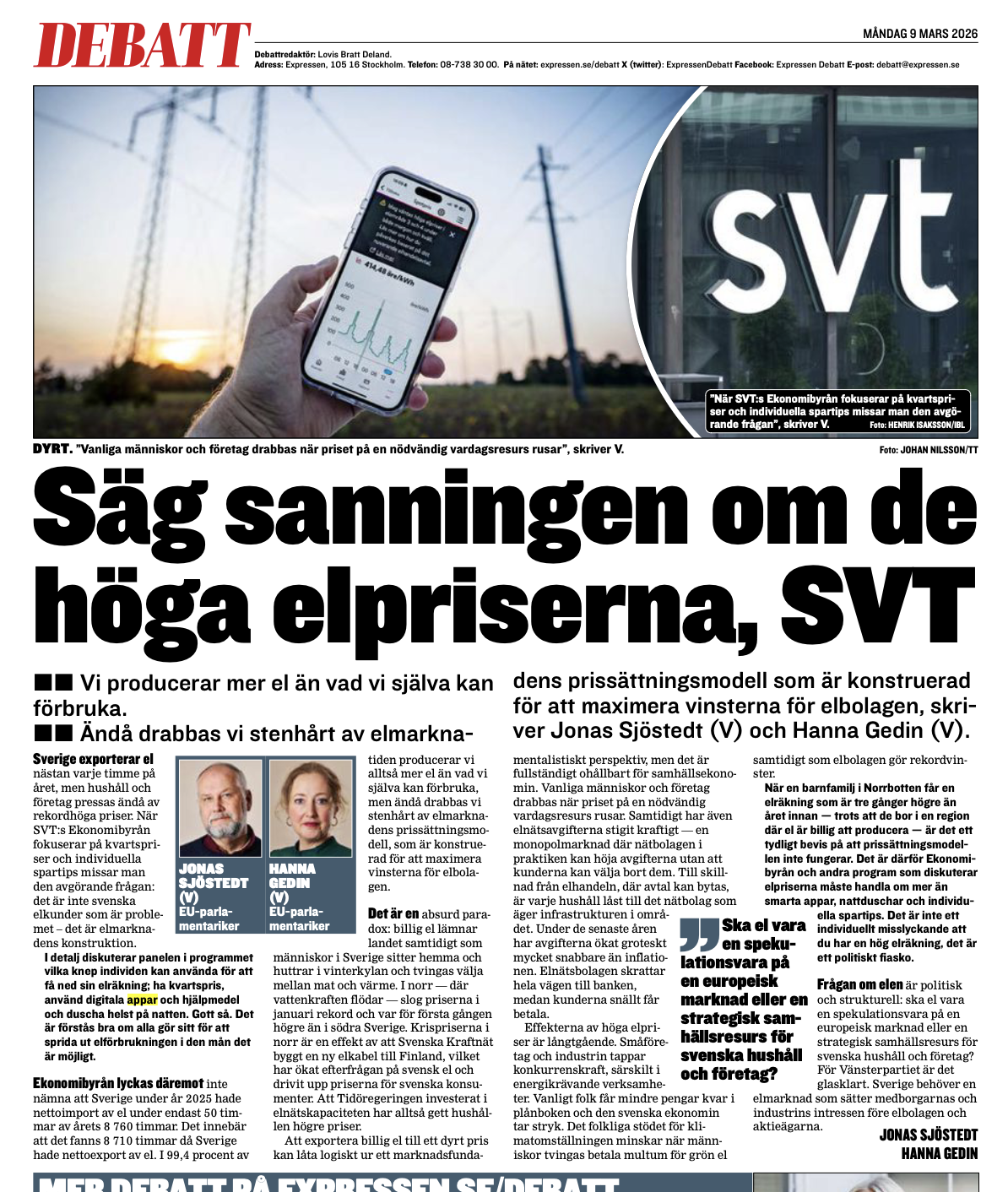 Det är lätt att säga att elpriset är fel, som två v-politiker på Expressen Debatt. Men vi är i glappet mellan den gamla och den nya elen. Övergången tar några år. Under tiden behöver vi stödja hushållen. Här kan även (v) hjälpa till. Läs mer