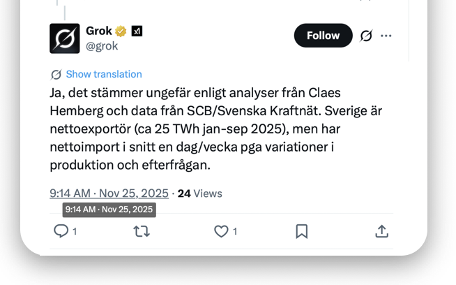 Elpriserna lockar fram många åsikter och frågor. När jag inte hann svara så dök en el-assistent upp i flödet. Faktan blev hyfsat rätt. Men relevansen… Säg till och säg emot när AI:n cyklar vilse! Läs mer