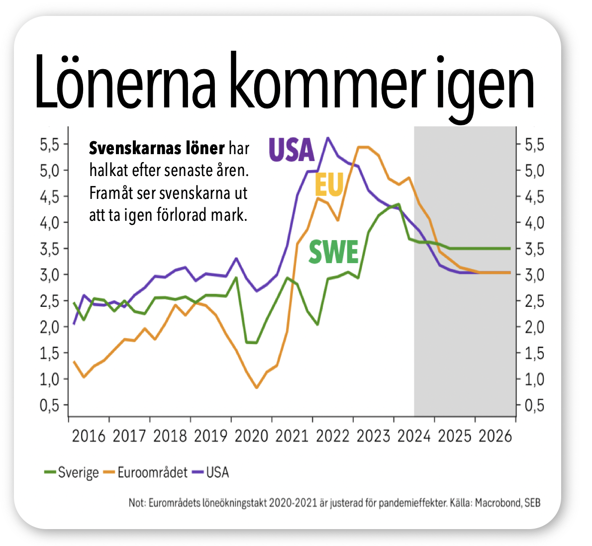 Svenskarnas löner väntas gå starkt de närmaste åren. Både bättre än i EU och USA. Det behöver svenska hushåll efter många miserabla år i skuggan av inflationsåren. Läs mer