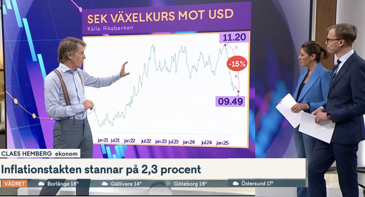 Lilla kronan är nu ovanligt stark, diskuterade vi på Tv4 kl 11.30 . Något som lär glädja många svenskar i sommar. Om bara konjunkturen tar fart. Läs mer