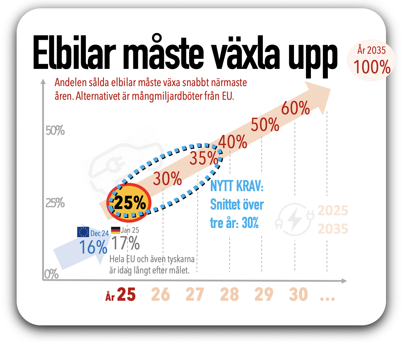 Istället för hårda krav om 25 % 2025, så gäller nu snittet 30% över åren 2025-2027. Med andra ord ska de nå 30% under perioden.