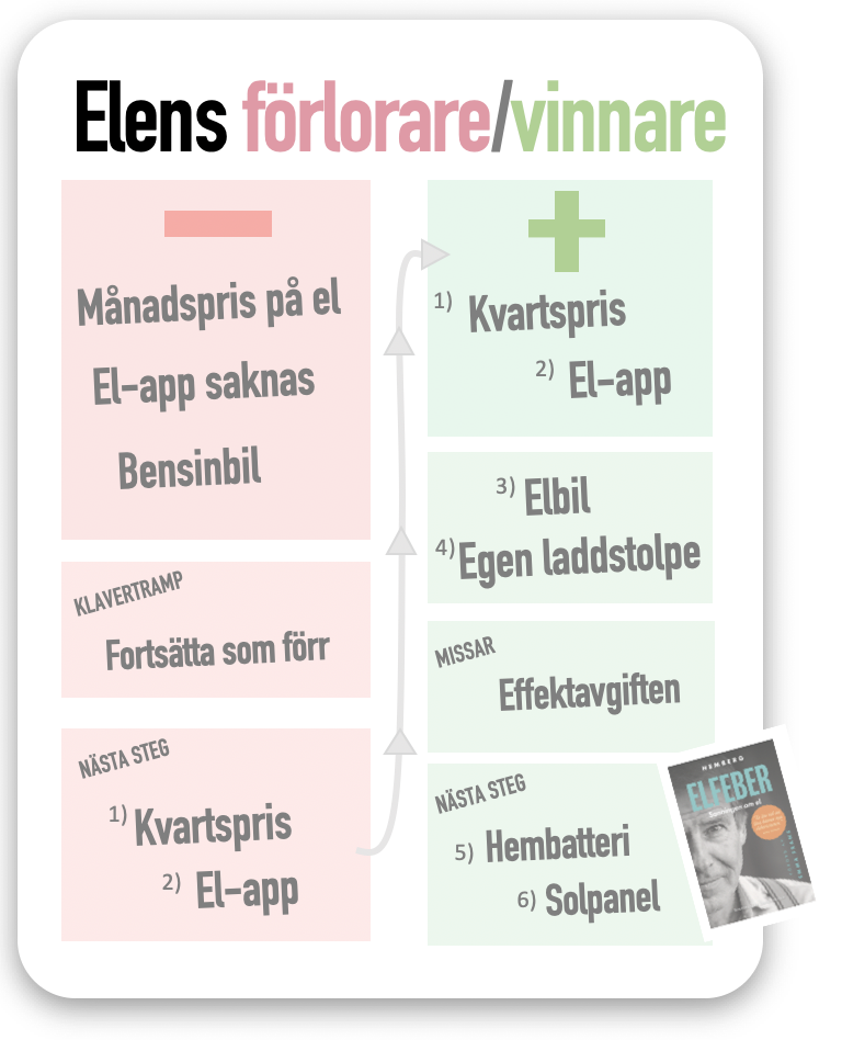 De lyssnar istället på elbolag som uppmanar dem att duscha på vissa tider, vänta med diskmaskinen osv. Men det är inte alls där de stora elektriska vinsterna finns att hämta.