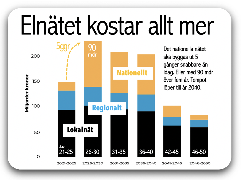 När jag frågar nätbolagen om prognoser framåt är det tämligen tysta. De ger inga prognoser, säger det. Nys, tänker jag. Naturligtvis måste dessa jättar ha full koll på varje skruva och mutter. Många årtionden framåt. Deras tysta svar får vi istället ta som en varning. Priserna lär fortsätta klättra.