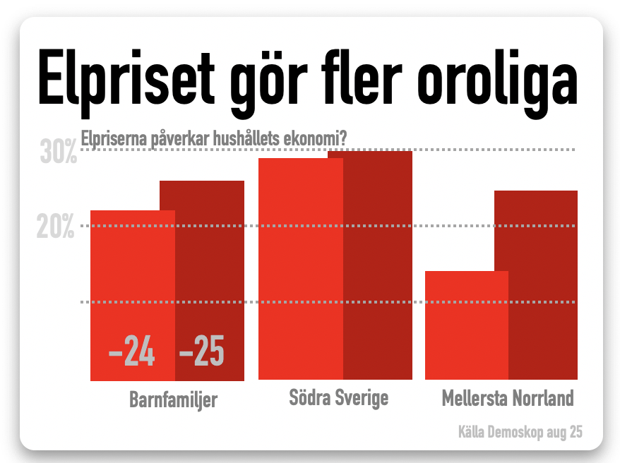 Hushållen reagerade, och elstressen växte under året. I södra Sverige är var tredje hushåll öppet oroligt för elprisernas roll i den egna ekonomin. Elstressen har dessutom vuxit de senaste kvartalen.