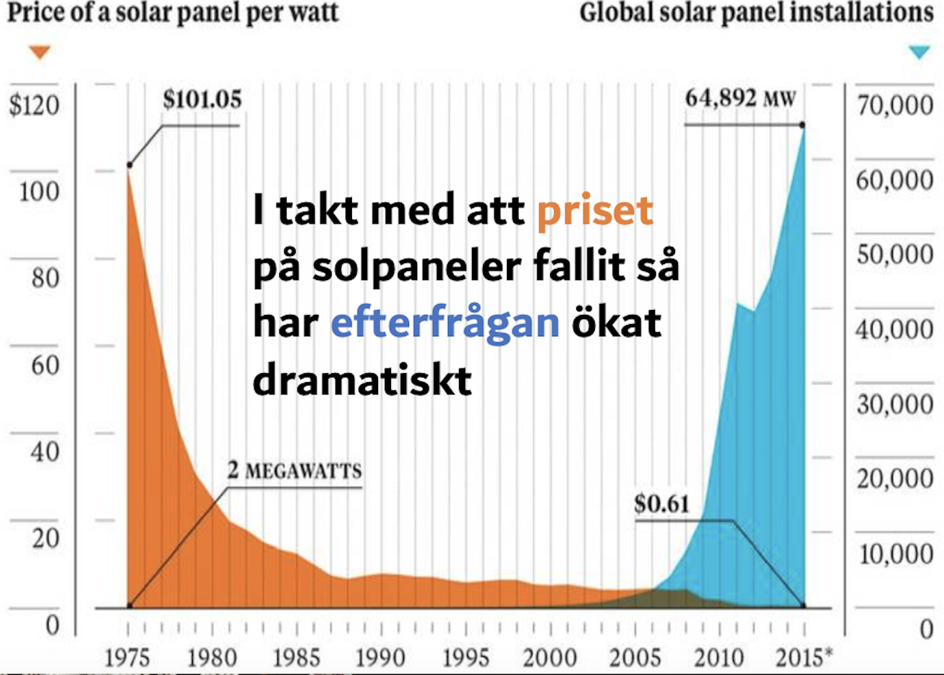 Här borde väl Eon se ny en affär? För: Inte ska jag använda mer el närmaste åren, utan snarare mindre. Så inte behöver de investera för min skull, tänker nog många. Jag vill ju minska energianvändningen. Istället skulle jag vilja att Eon & Co säger: ”Minska med 10% och vi sänker ditt pris med 12%”. Och den med solpaneler borde i samma andetag gynnas och inte sänkas…