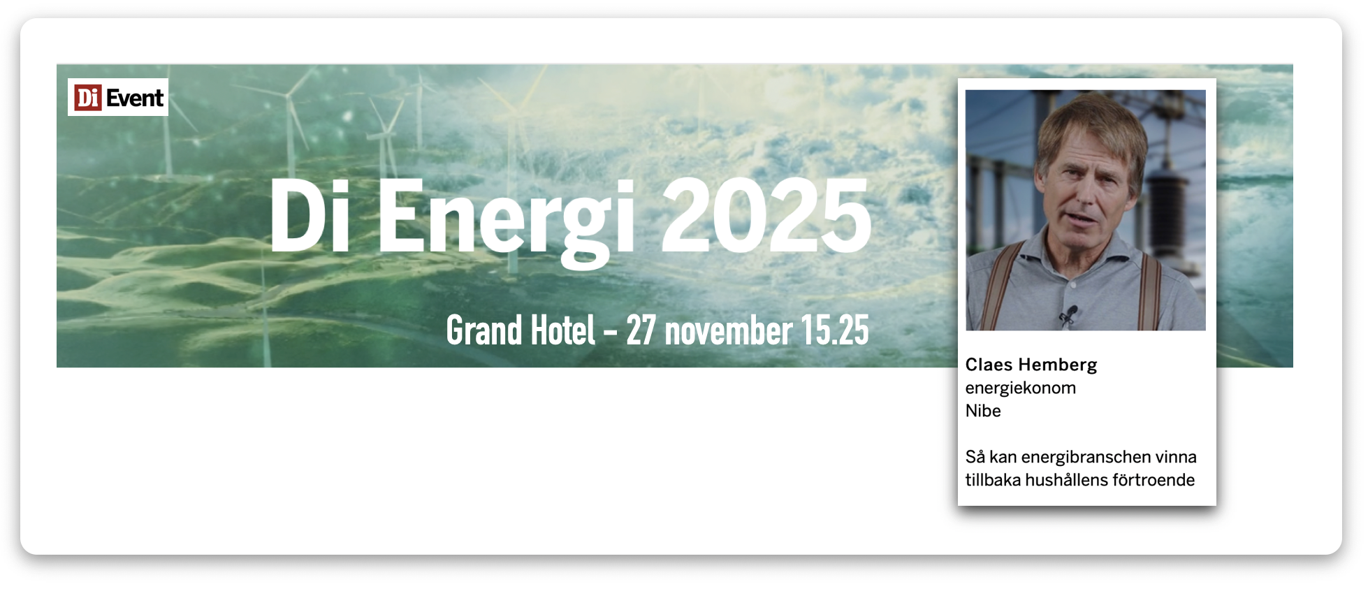 Hushållens misstro mot energibranschen väcker nu nya grepp. Det märks i ny service och ny teknik. Di Energi den 27 november kl 15.25 presenterar jag fakta, insikter och spaningar. Vad märker du? /c