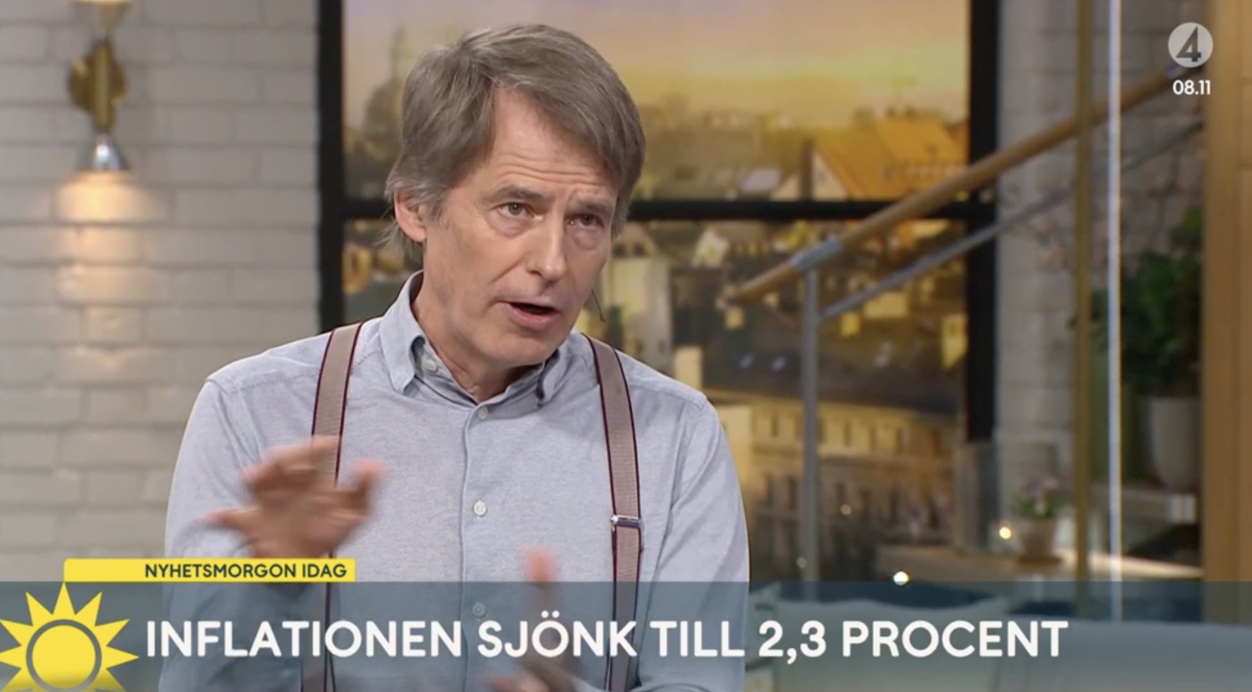 Grattis, svenskar – inflationen faller till 2,3 %. Billigare el och energi samt en starkare krona hjälper till. Diskuterade vi på tv4. Så här års brukar inflationen falla, hela vägen fram mot sommaren.