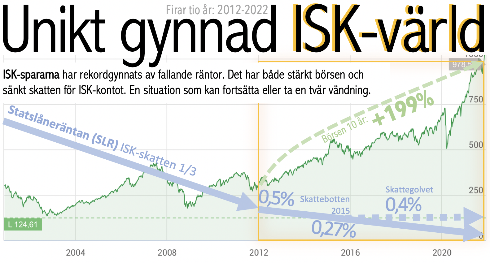 Debatten om skatte-nivån har också fortsatt. Eftersom den varit så förmånliga senaste årtiondet. Men det beror ju på att ISK-spararna haft tur. Med bra börs och den låga räntan. Fortsättningen står skriven i stjärnorna. Utfallet kan inte ens en vänsterpartist förutspå.