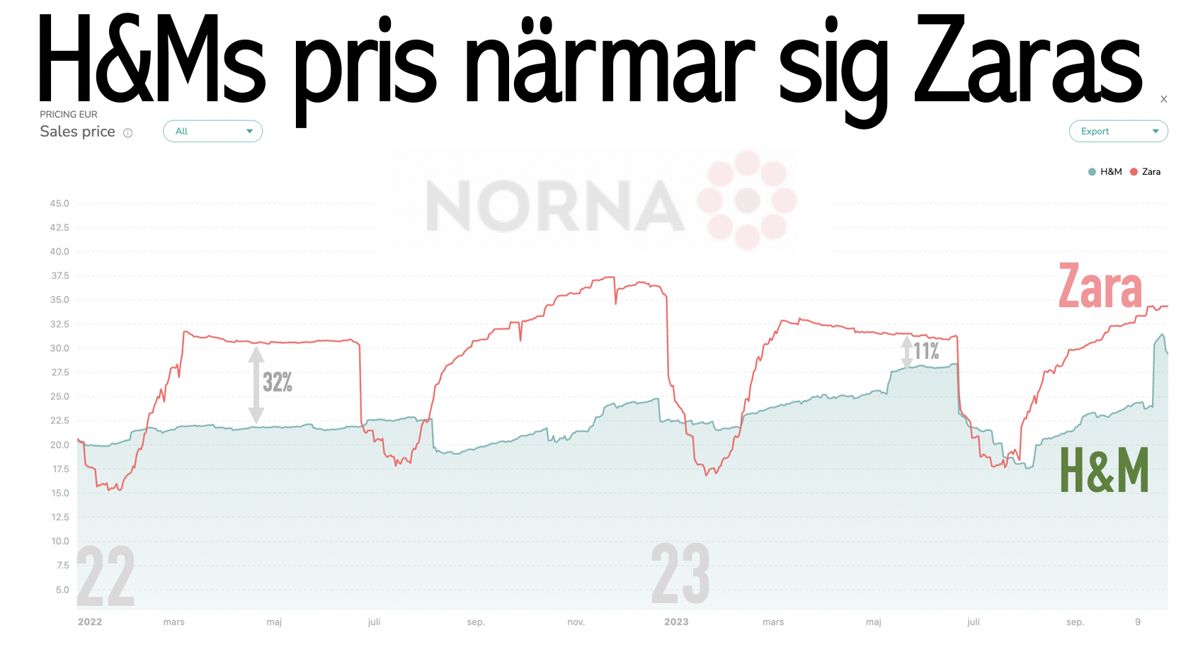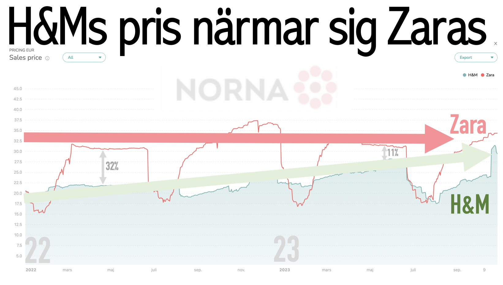 Så i reaperioden förstärktes bilden. Under sommaren skuggade H&M konkurrenten Zara första gången någonsin. De sänkte priserna abrupt. De sänkte lika snabbt och djupt.