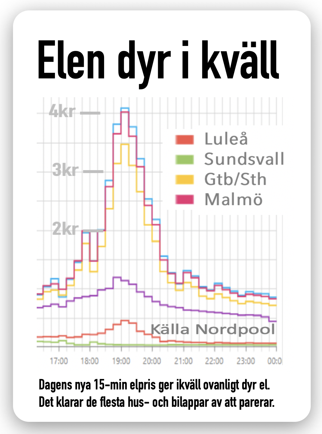 Kvällstopparna är högre än tidigare. Sena eftermiddagar och kvällar bjuder på högre kvartspriser än tidigare timpriser. Å andra sidan kan hushåll lätt undvika dessa timmar med hjälp av appar.