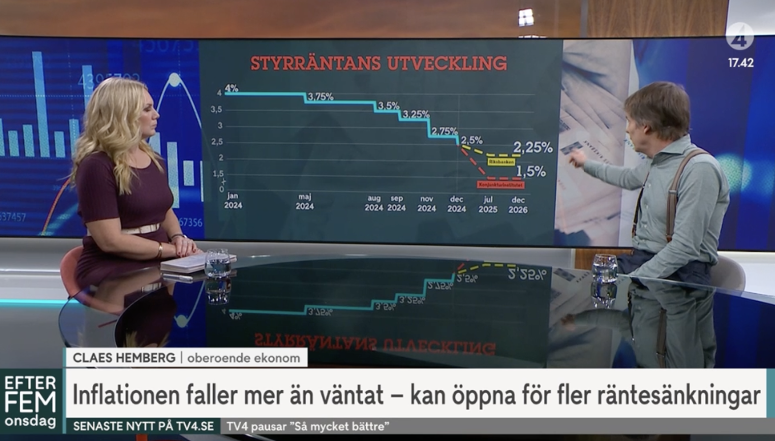 Sveriges och svenskarnas ekonomi bli betydligt bättre och roligare 2025. Det säger prognoserna. Men kanske ropar vi Hej för tidigt. Några frågetecken finns i rockärmen. Det diskuterade vi på Tv4 (17.39).