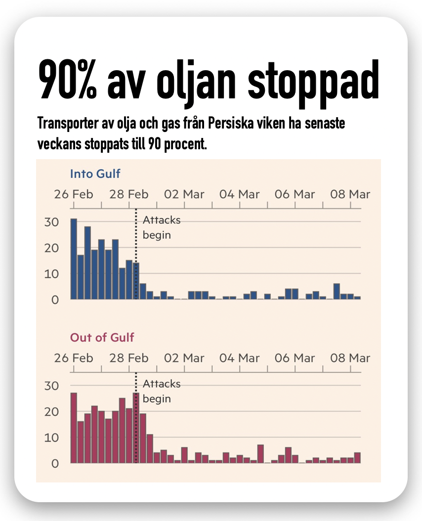 Istället ser krisen i Iran nu ut att pågå i flera månader. Det kan att skapa mer allvarlig brist på både olja och gas. Vi talar om en femtedel av världens olja och gas som nu är mest helst stoppad.