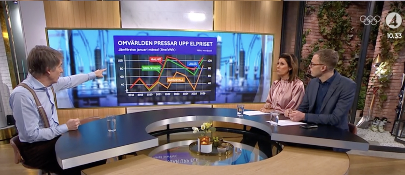 2022 var det tyska gaspriser som höjde priset på el i södra Sverige. Plötsligt steg priserna tre gånger från 30 till 100 öre. I år 2026 är det dyr finsk el som höjer priserna fyra gånger från 24 till 94 öre.