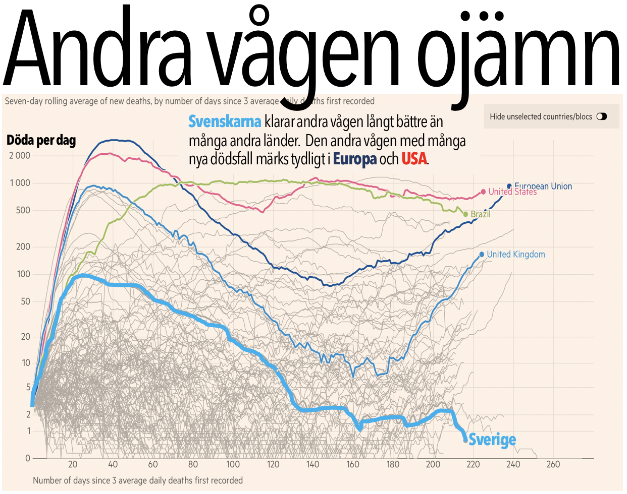 Är jag ensam om att tycka att antalet döda är svårtolkat? Antalet döda/capita är väl klart enklare eller?