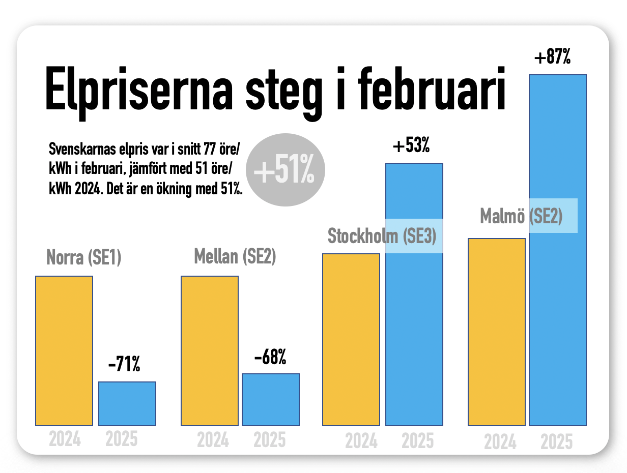 Prisutvecklingen i februari överraskar. Inflationen ligger en hel procentenhet över Riksbankens förväntningar, vilket gör deras mål om 2,0 % inflation plötsligt avlägset.