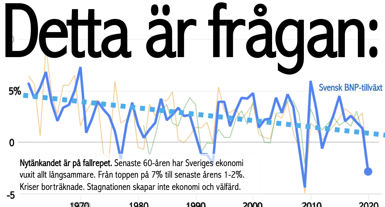Framöver så ska omvänt stimulanser och priserna tunnas ut. Och huvudmotorn ska då istället vara den verkliga tillväxten. Där Sveriges och västvärldens tillväxt är bekymmersamt låg. Tillväxten har ju senaste årtiondena här sjunkit från 7% till idag bara 1-2 procent.
