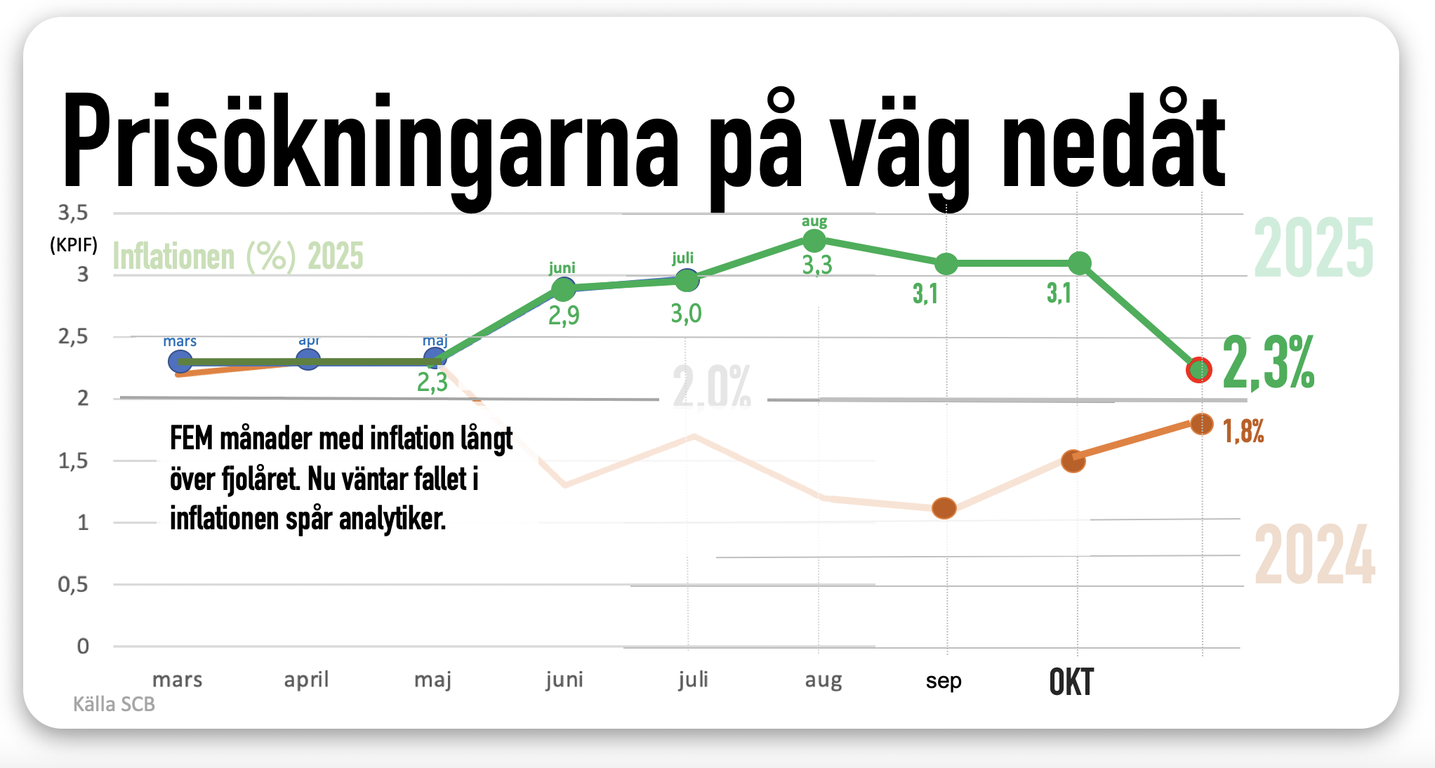 Sommaren 2024 började inflationen vända upp. Sedan dess har vi tampats med stigande priser.