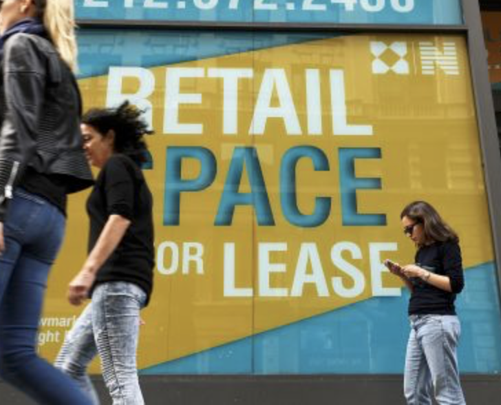 Vi ser det redan spöklikt tydligt i USA. I Los Angeles mötte jag nyligen en stad som helt tappat ansiktet. Vackra historiska varuhus och kontor står övergivna. Och det sprider sig. Här intill visar kartan antalet lediga butikslokaler kring Broadway i New York.