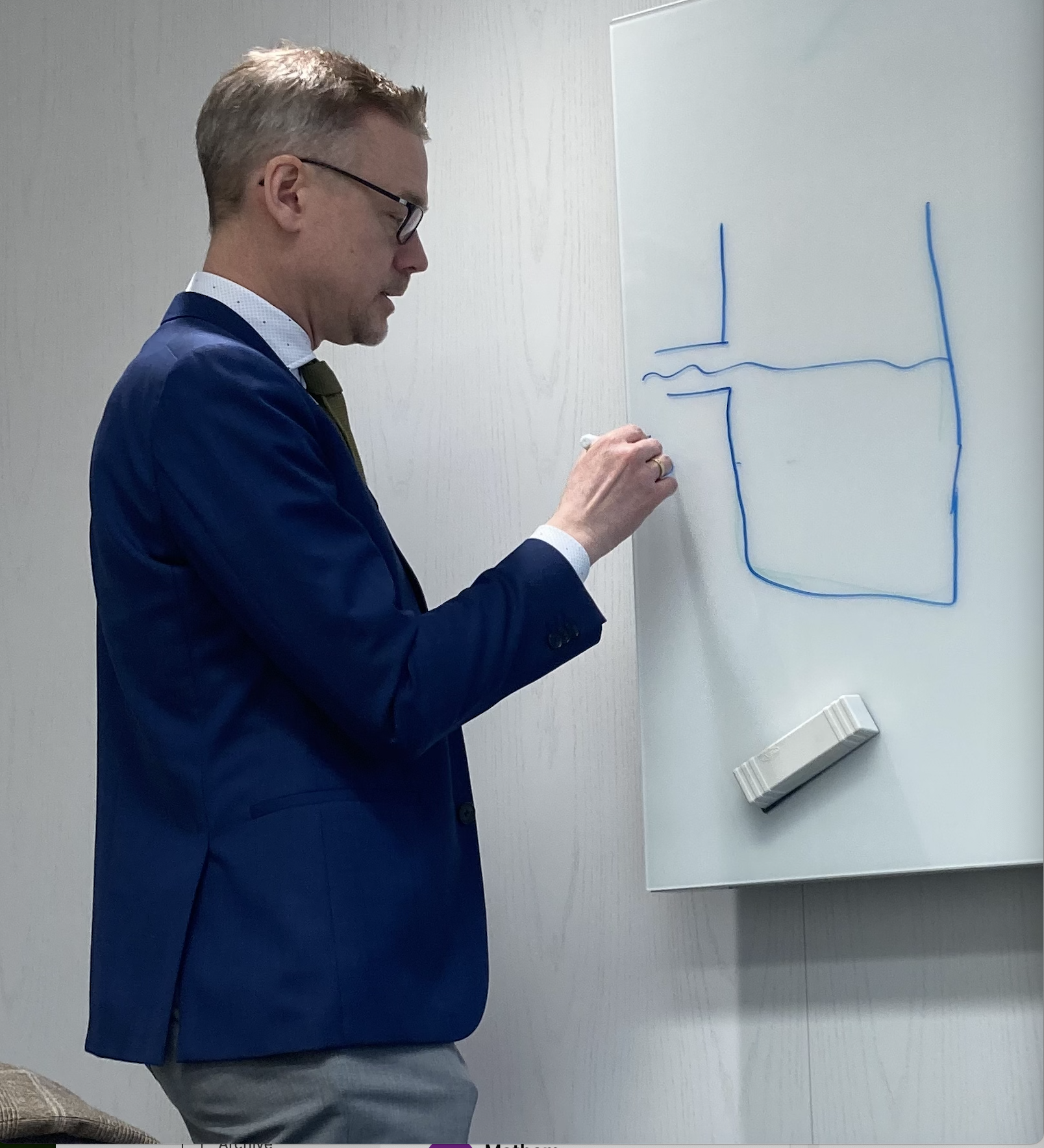 Carl BerglöfJag diskuterar frågan med vår nationella kärnkraftsamordnare Carl Bergkvist. Han förklarar exportens effekter ritade han en slående enkel bild på tavlan. När vår export ligger i nivå med vår överkapacitet slår den in i priset med stor kraft.