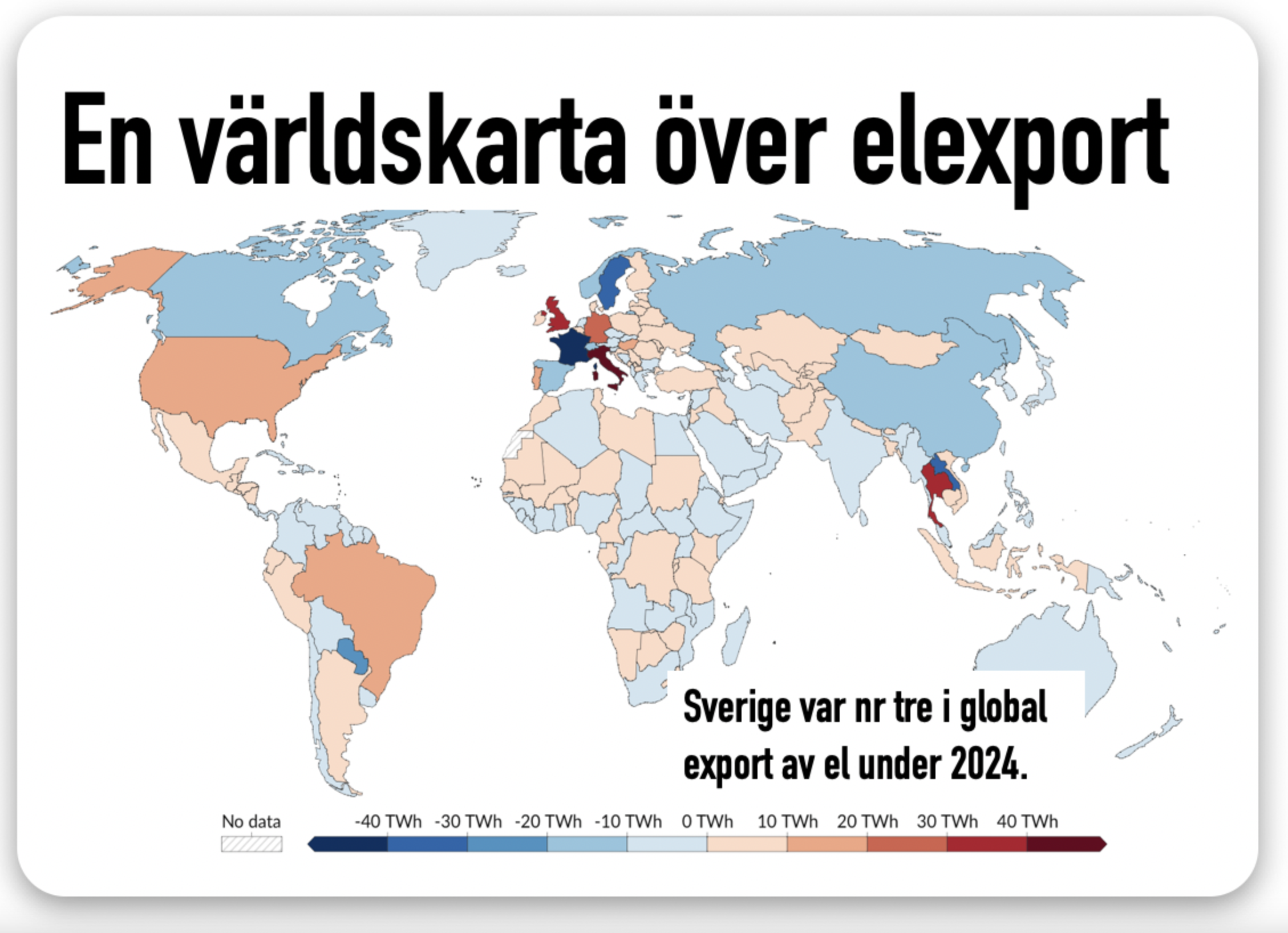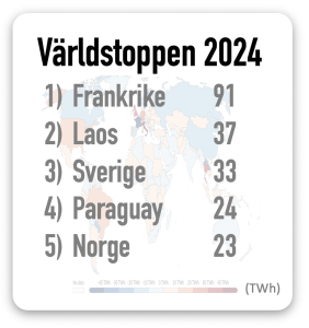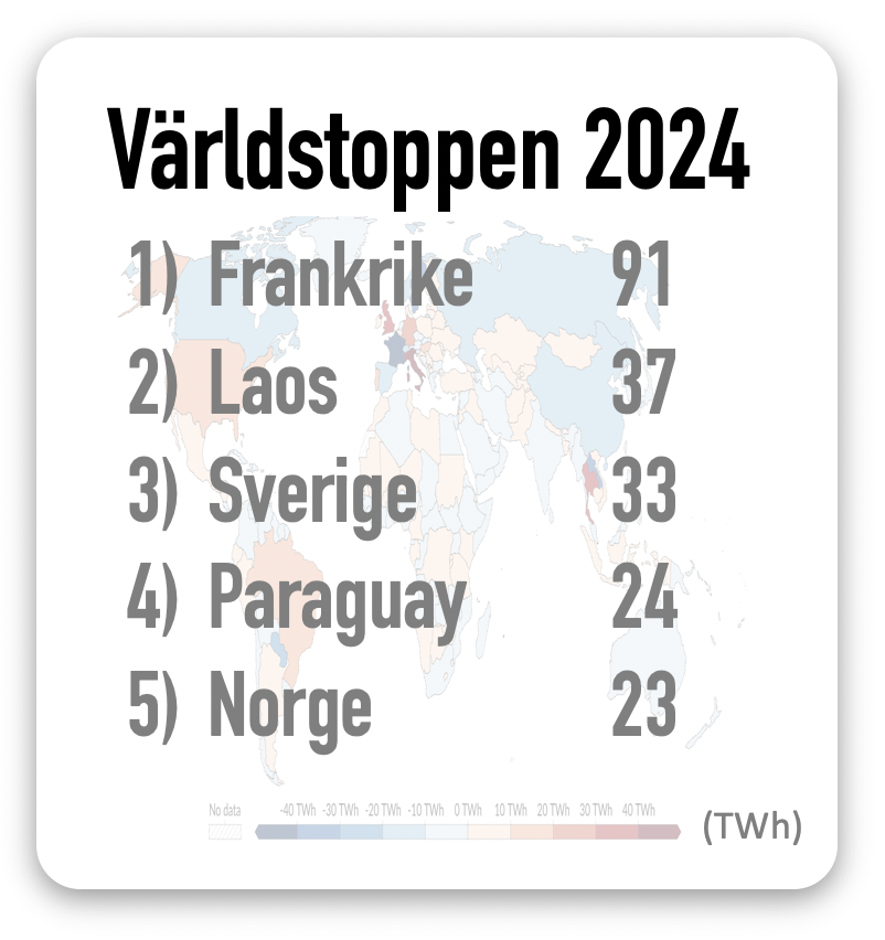 elexport världenEtta i världen är Frankrike. Det handlar om kärnkraft. Laos och Sverige däremot har en ryggrad i vattenkraften, likt exporten från Paraguay och Norge.