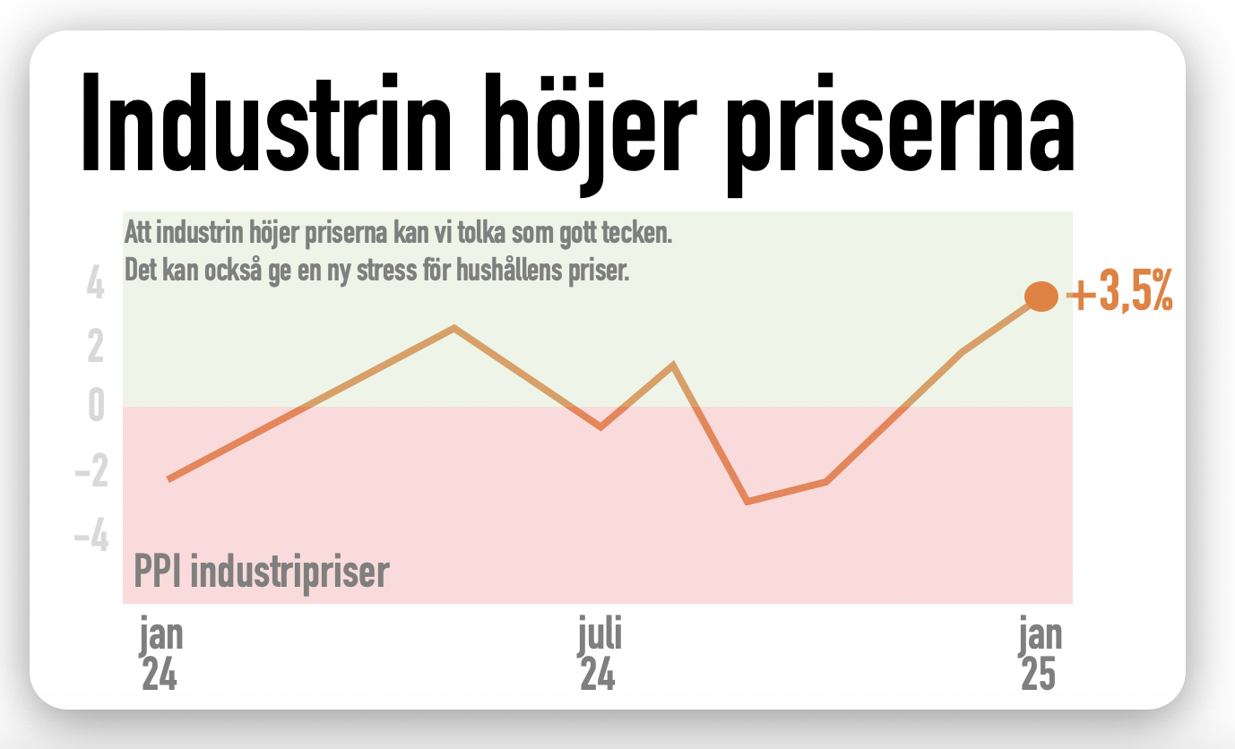 Lägre oljepriser bidrog också till lägre import och energipriser. Även industrin har höjt sina priser. Januari pekar på +3,5 % ett år tillbaka. Något som kan stressa konsumenterna.