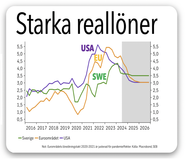 Våra nya löner stiger vidare. Vi svenskar väntas få bättre löneökningar än både amerikaner och européer. Anledningen är att vår industri mår bra och går bra.