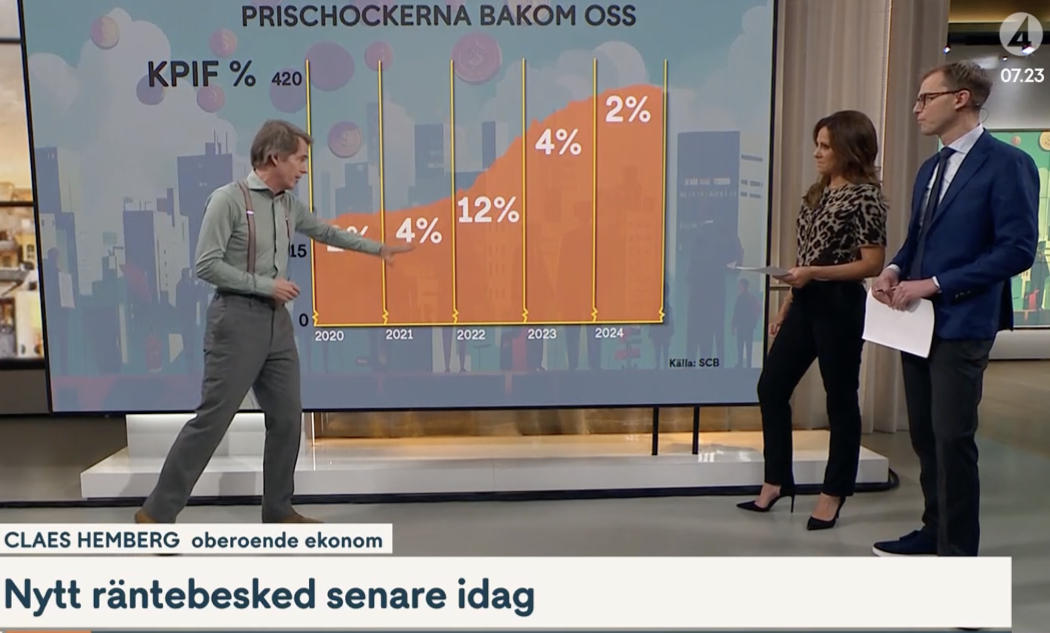 Vår ryggsäck med tunga priser tar lite tid att lätta. De senaste fem åren har priserna stigit år för år: 2 %, 4 %, 12 %, 4 % och 2 %. Totalt är det 24 procent. Ja, det är en klyfta att hämta igen. Diskuterade på tv4.
