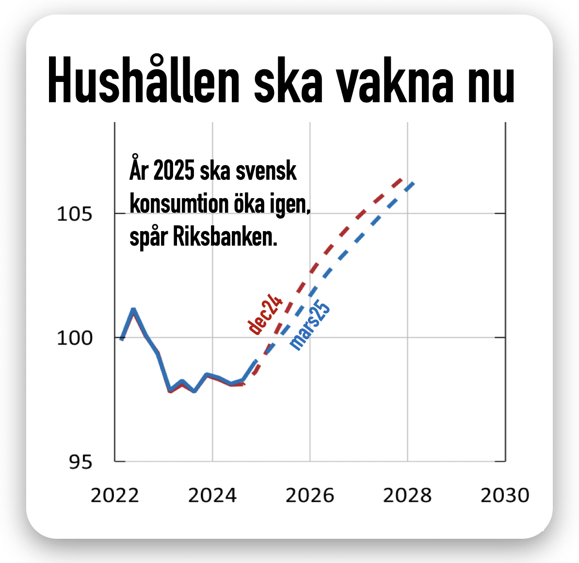 Samtidigt är konjunkturen i Sverige försenad. Företag avvaktar att nyanställa. För företagen väntar själva på tydligare besked från Vita huset.