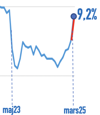 Samtidigt som tullarna kan tvinga upp priserna signalerar hushållen att de vill se lägre ränta för att återvända till konsumtionen. Det blir en smal och svår balansgång för Riksbanken framåt.