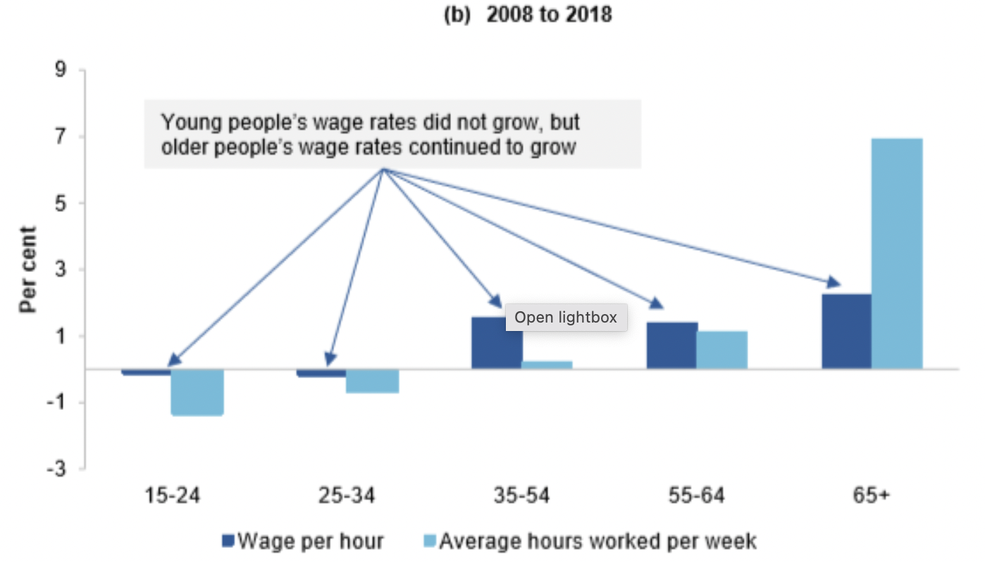 Unga är särskilt utsatta efter finanskrisen. Deras löner har backat senaste årtiondet, visar siffran från Australien. Pandemin har gjort det än värre. Vinnarna är de +65, de utanför arbetsmarknaden…