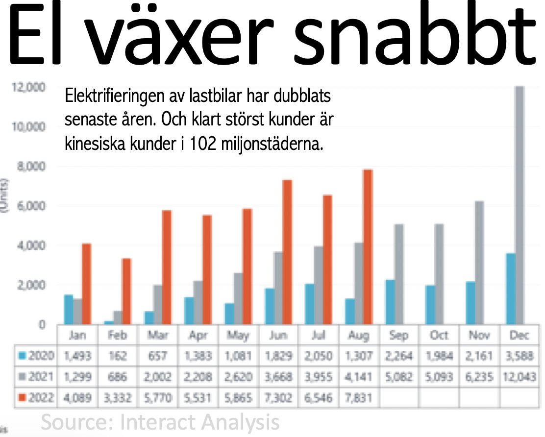 För det första ger elfordon både för- och nackdelar. Bägge aspekterna behöver alla i hela affärskedjan förstå. Från bilbyggare, till åkerier till chaufförer och slutkunder. El-världen är något nytt som hela kedjan måste beakta och bemöta. Äntligen kan just hela kedjan dra nytta av varandra. För solitärerna vinner inte i elvärlden. De sopas ut.